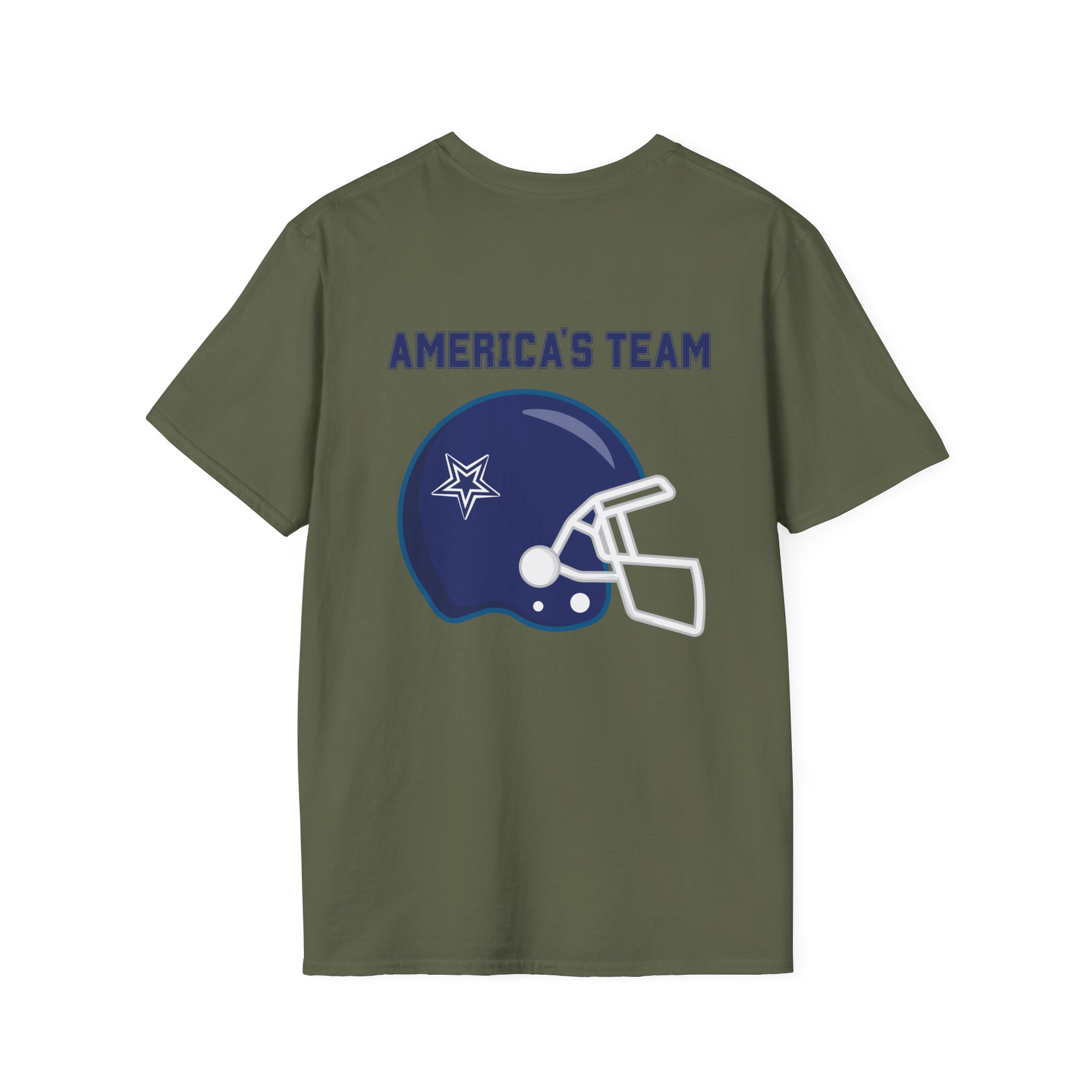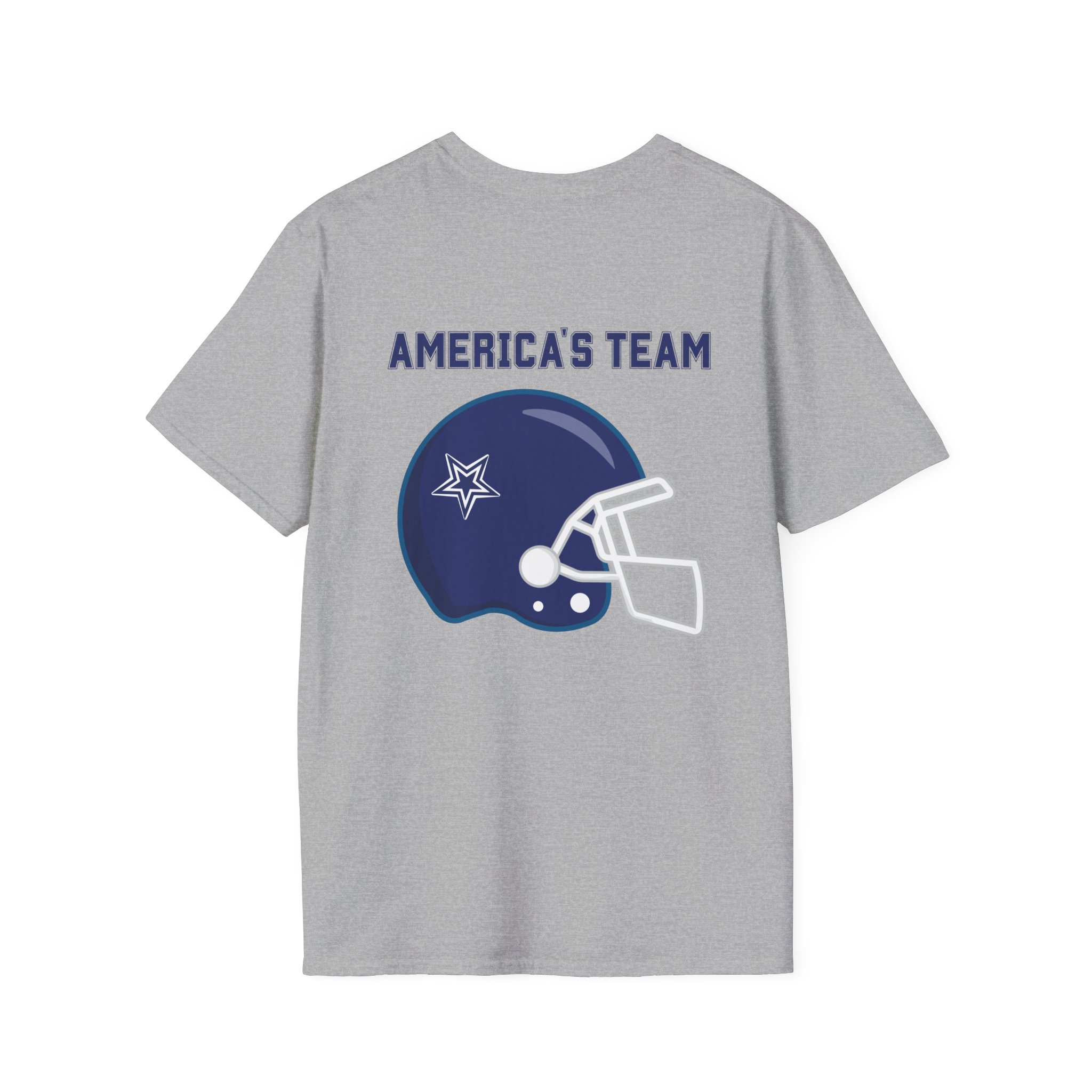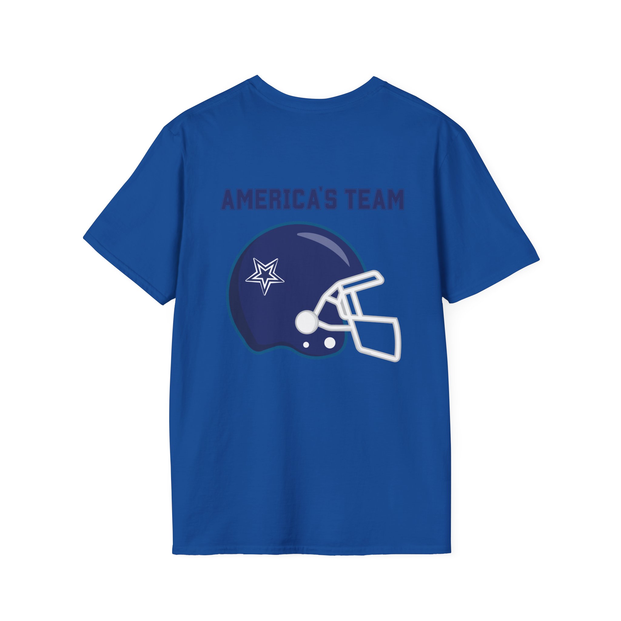 Looking to take your fan gear to the next level? This Dallas Cowboys Unisex T-shirt is the perfect way to show off your team spirit with style and pride. Featuring a bold star symbol on the front, it captures the essence of the Cowboys’ iconic identity. Turn it around, and you’ll find the striking “America’s Team” text in large, eye-catching letters, paired with a detailed helmet and logo design. Whether you’re at the stadium or just out and about, this Dallas Cowboys T-shirt is a must-have for any true fan.