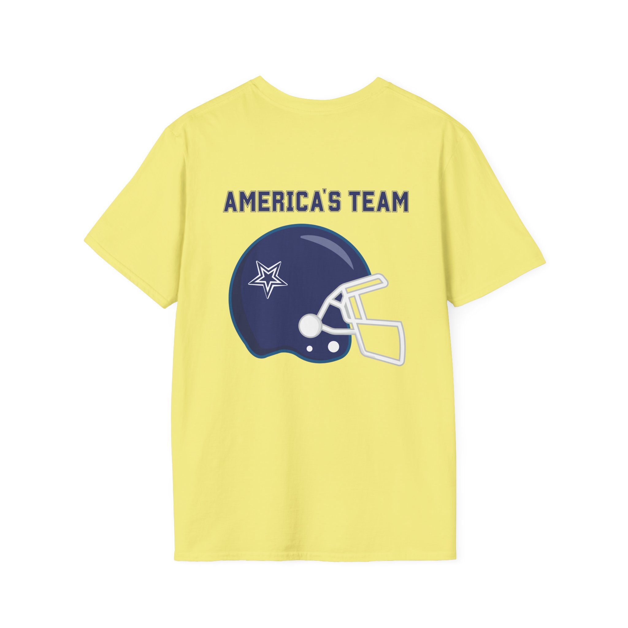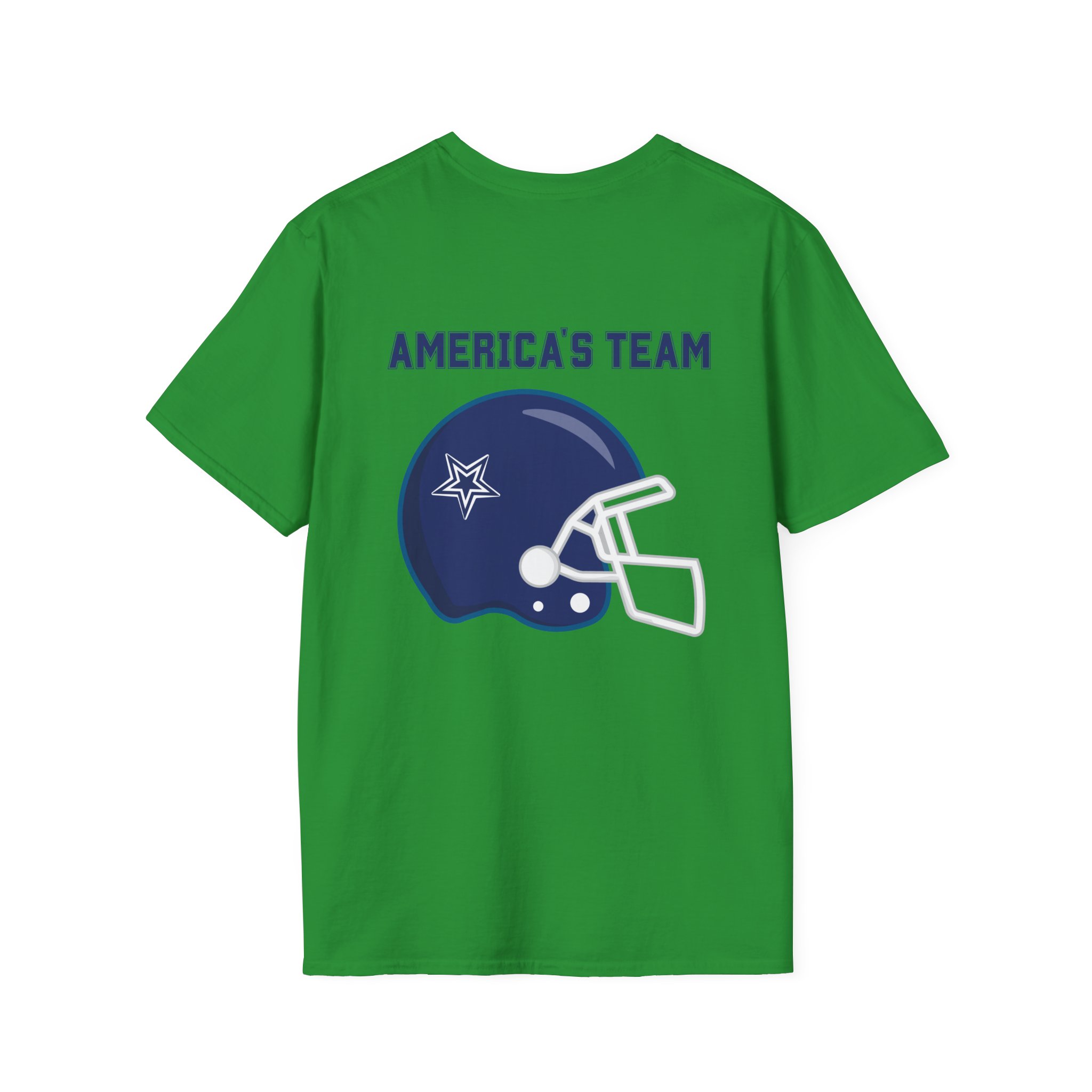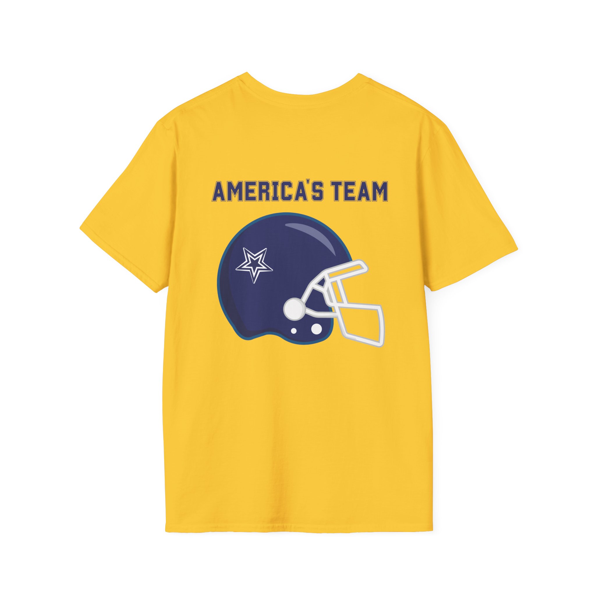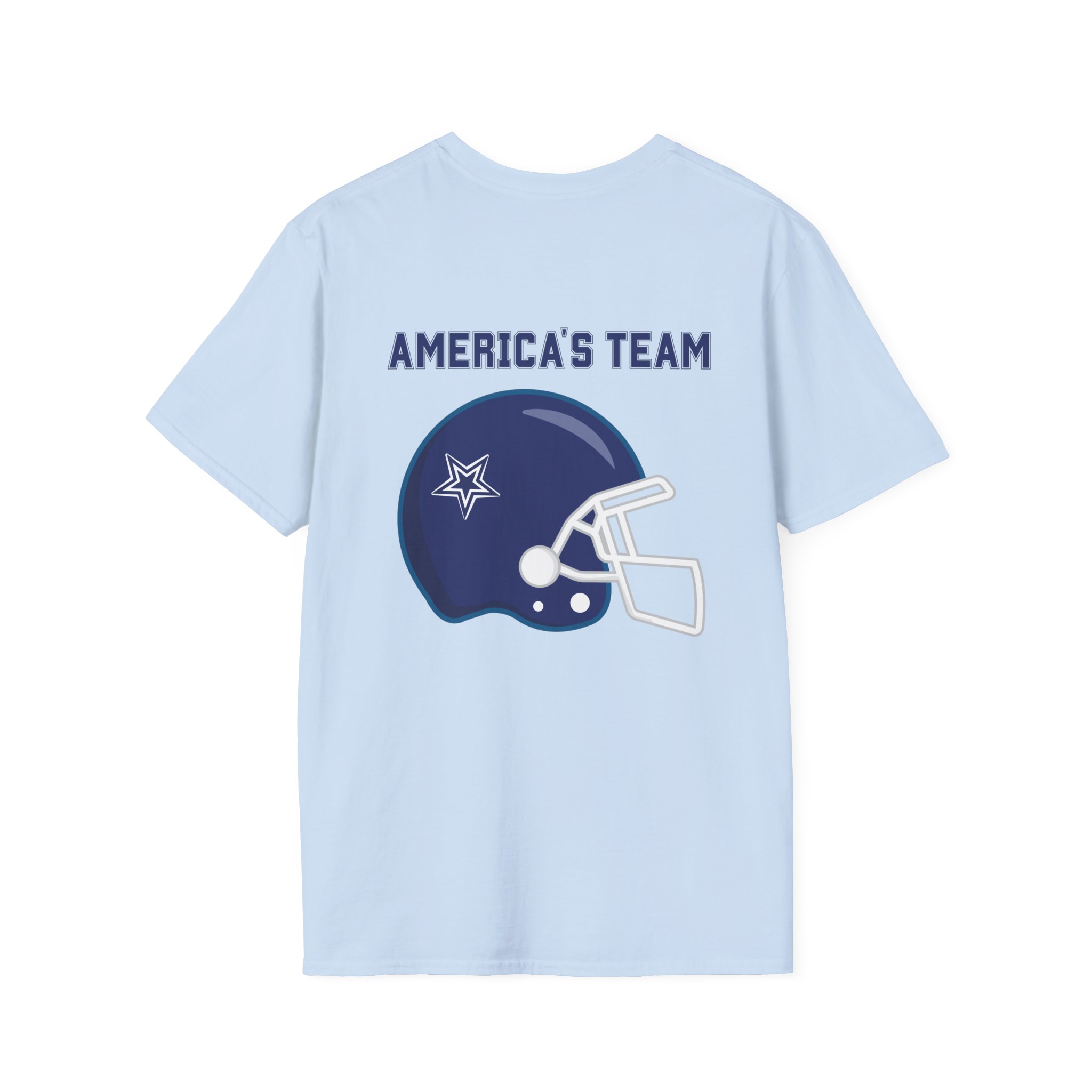 Looking to take your fan gear to the next level? This Dallas Cowboys Unisex T-shirt is the perfect way to show off your team spirit with style and pride. Featuring a bold star symbol on the front, it captures the essence of the Cowboys’ iconic identity. Turn it around, and you’ll find the striking “America’s Team” text in large, eye-catching letters, paired with a detailed helmet and logo design. Whether you’re at the stadium or just out and about, this Dallas Cowboys T-shirt is a must-have for any true fan.