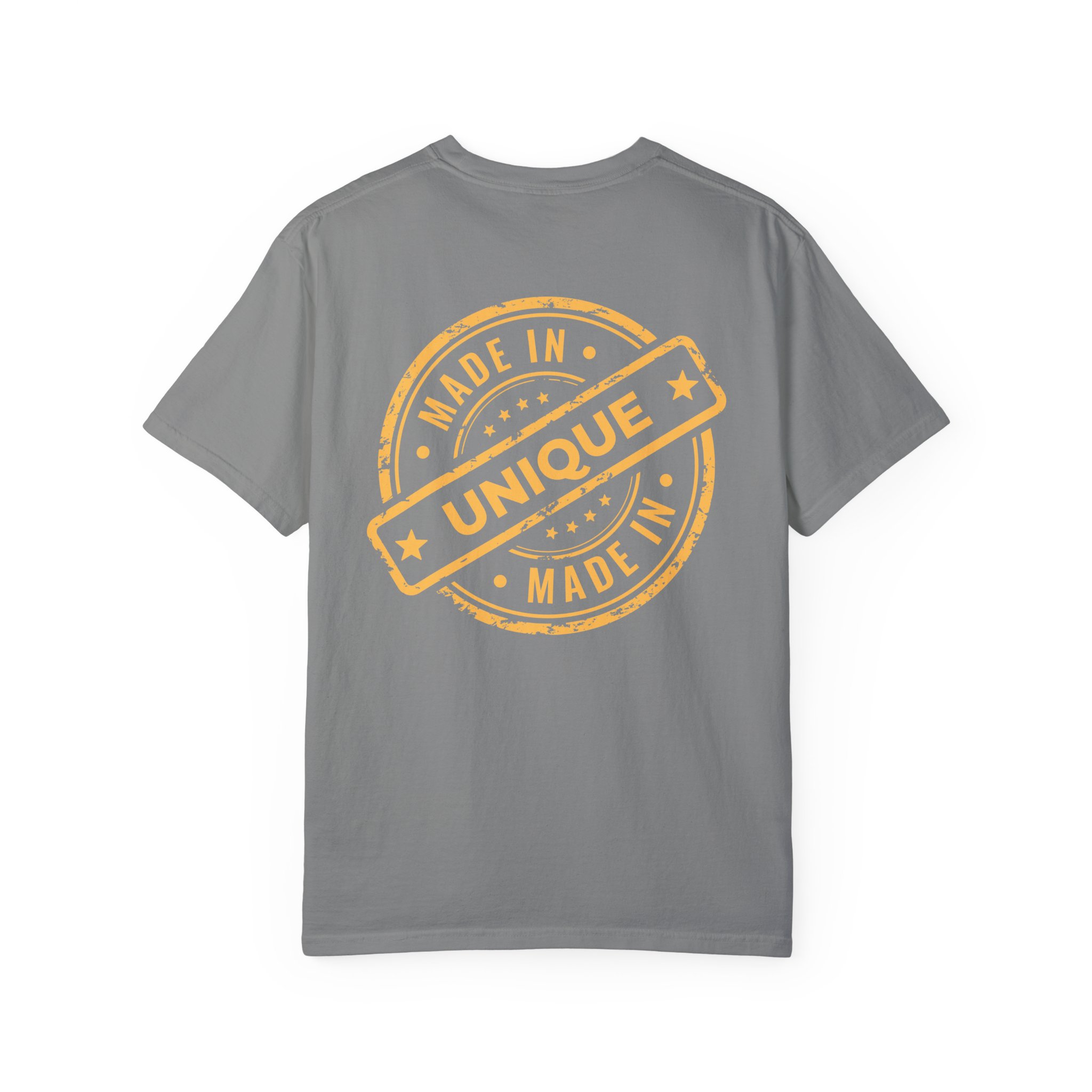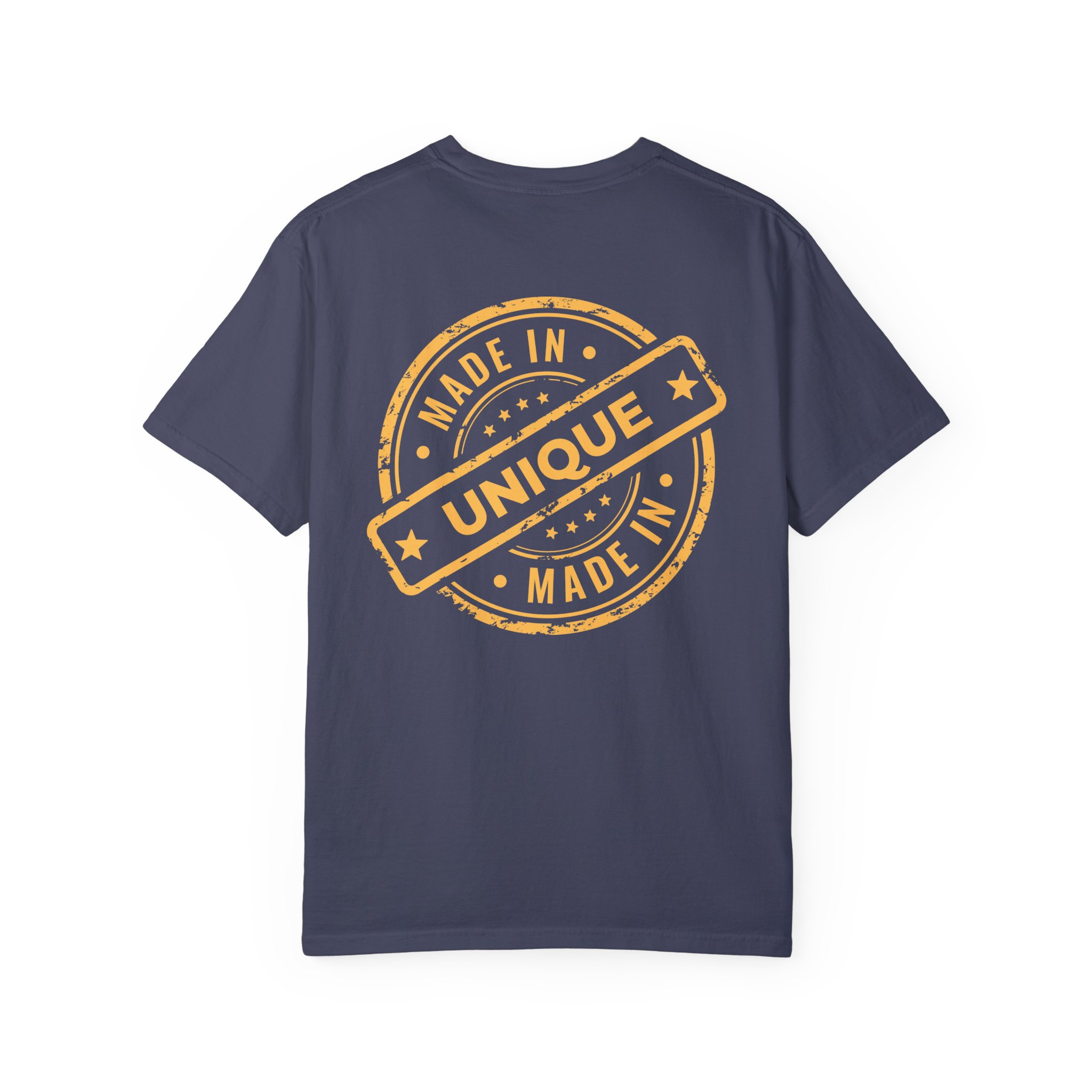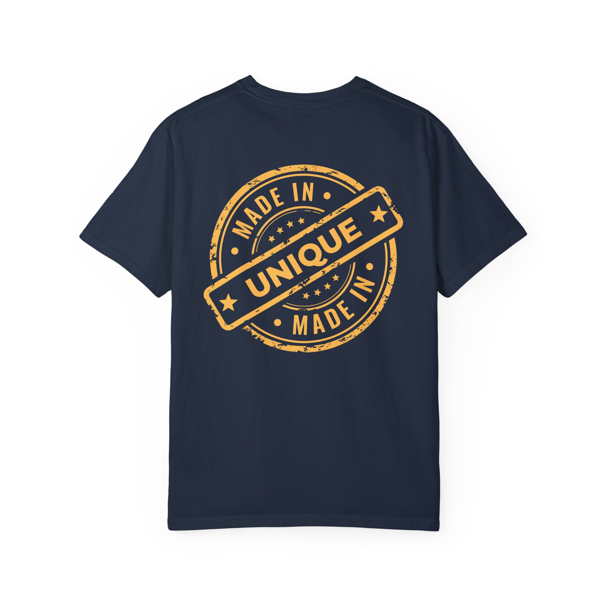 Crewneck unisex t-shirt with free worldwide shipping & fast USA delivery. Stay cozy in this unisex heavy blend tee with a gold ‘Made in Unique’ stamp!