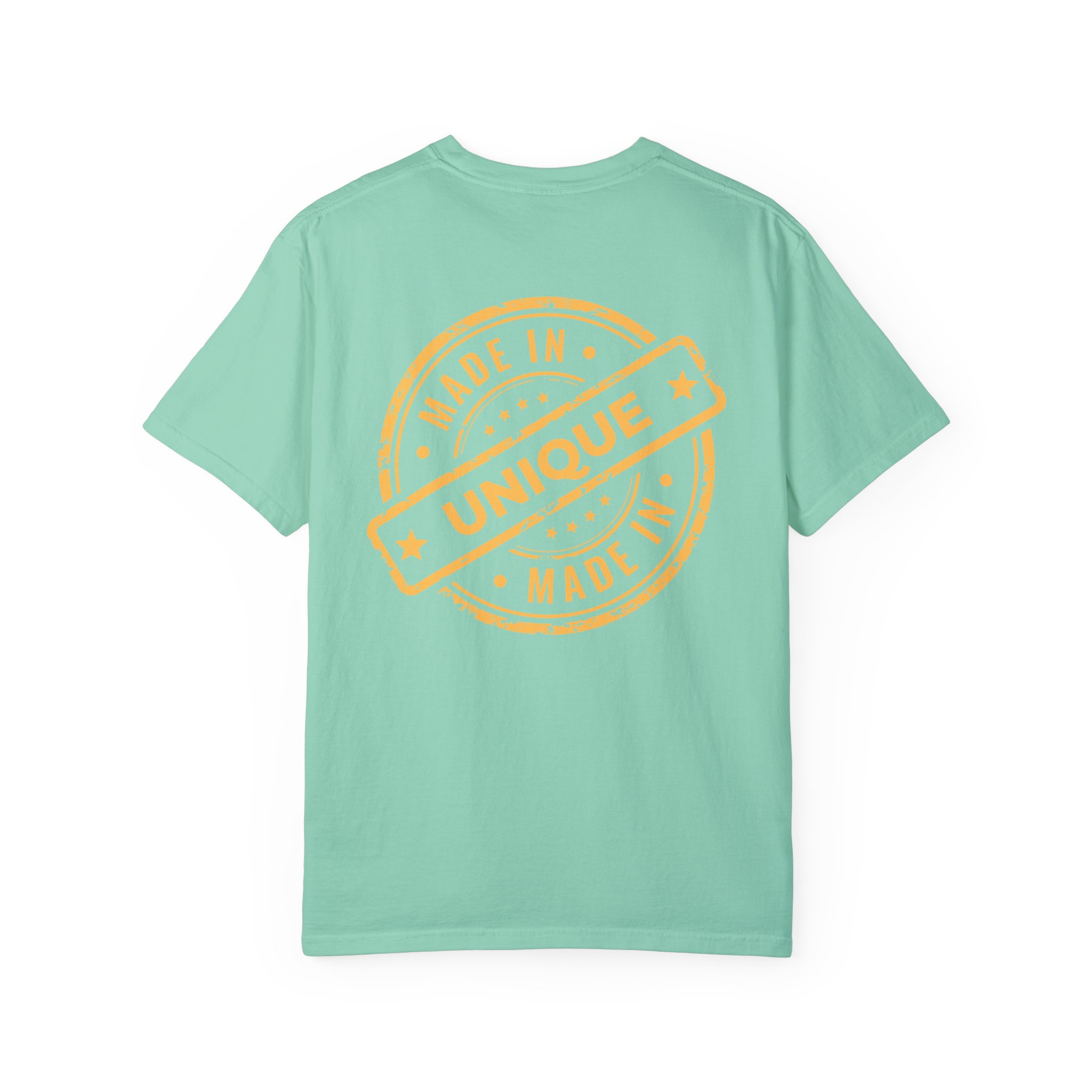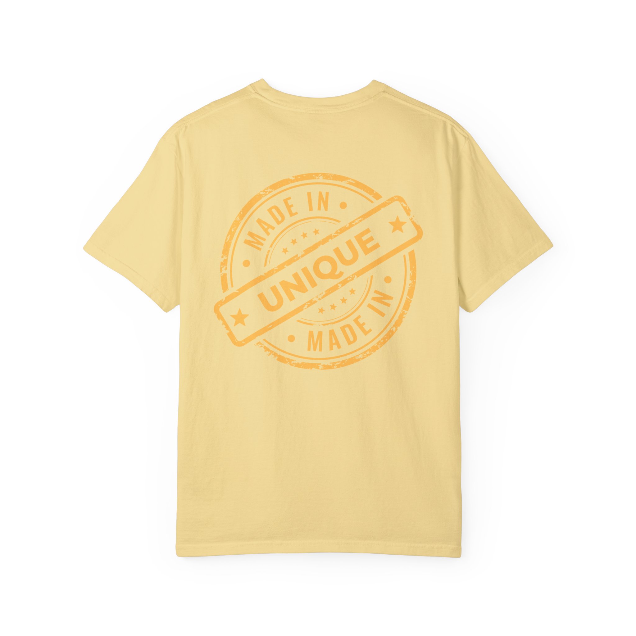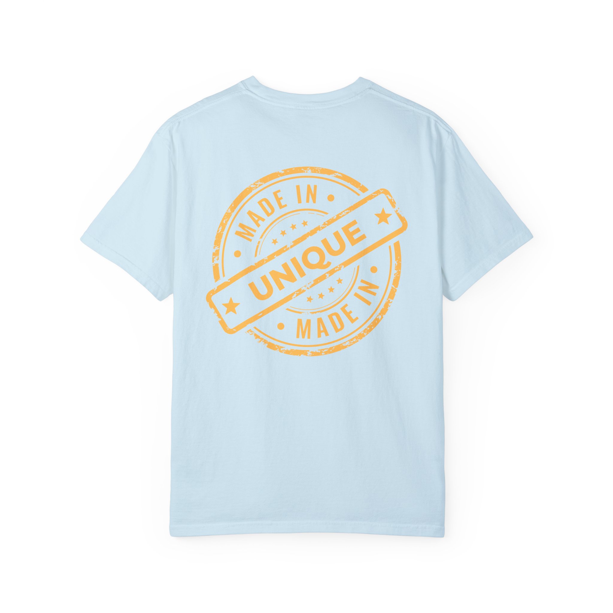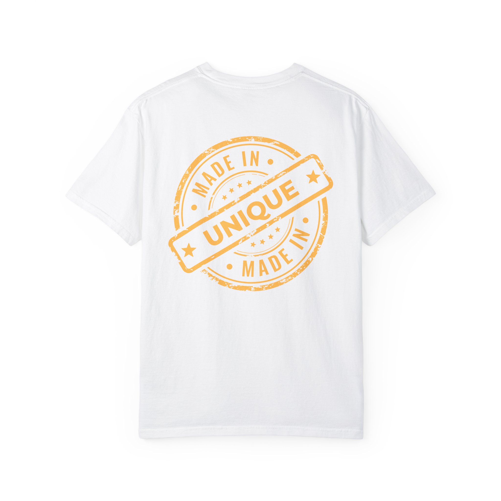 Crewneck unisex t-shirt with free worldwide shipping & fast USA delivery. Stay cozy in this unisex heavy blend tee with a gold ‘Made in Unique’ stamp!