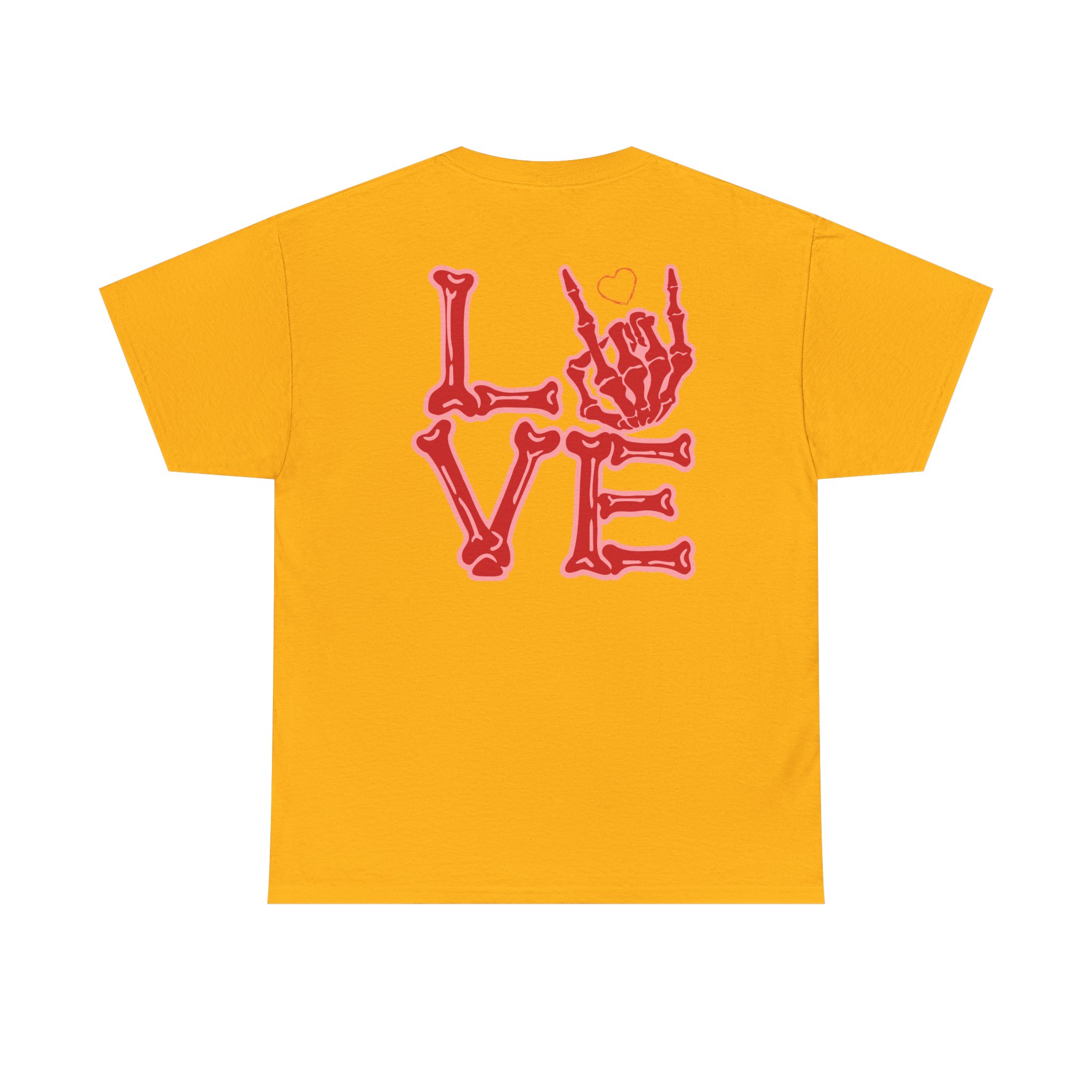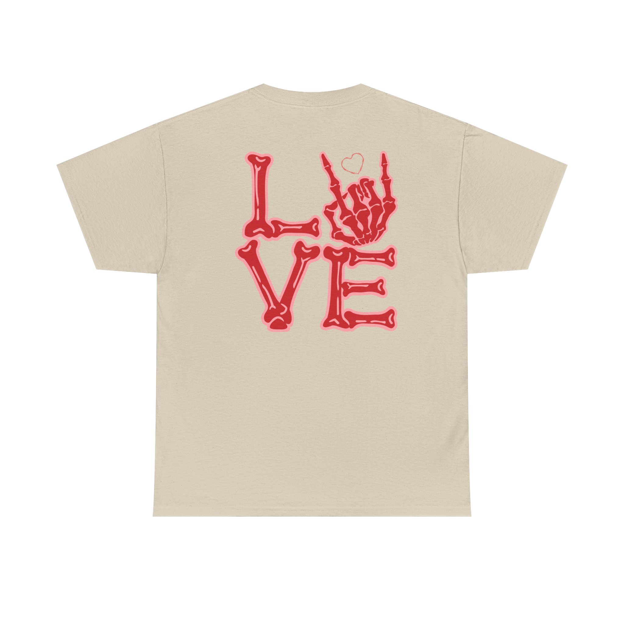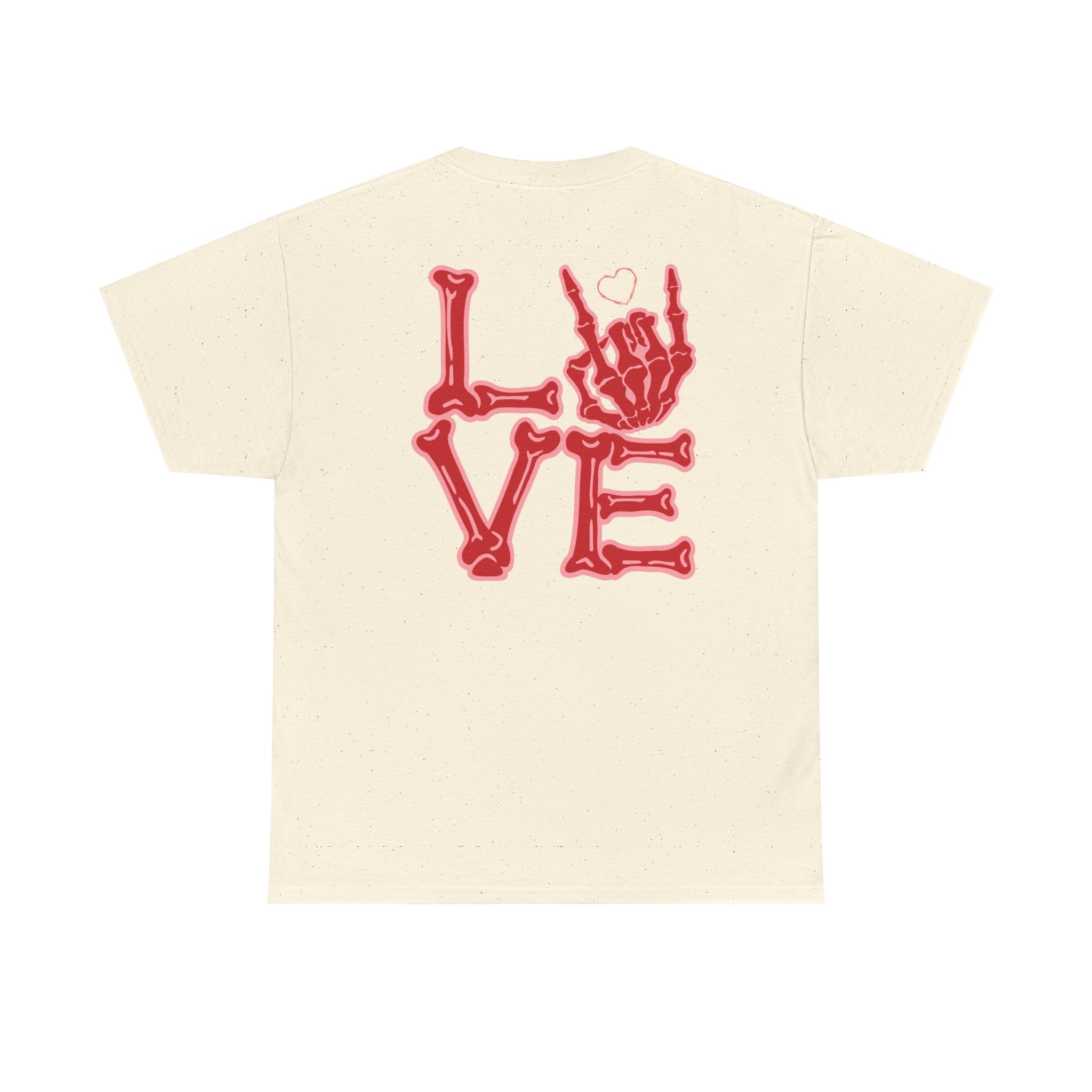 The unisex heavy cotton tee is the foundation of casual fashion, and this version brings warmth with its romantic back design. Made from medium fabric (5.3 oz/yd² or 180 g/m²), it’s crafted with 100% US cotton for a soft, breathable feel that’s ideal year-round. The specially spun fibers create a smooth surface, ensuring the “Love” and heart graphic shine with premium printing vividity and sharpness. Pair it with jeans or layer it under a jacket—this tee adds a touch of affection to every outfit.