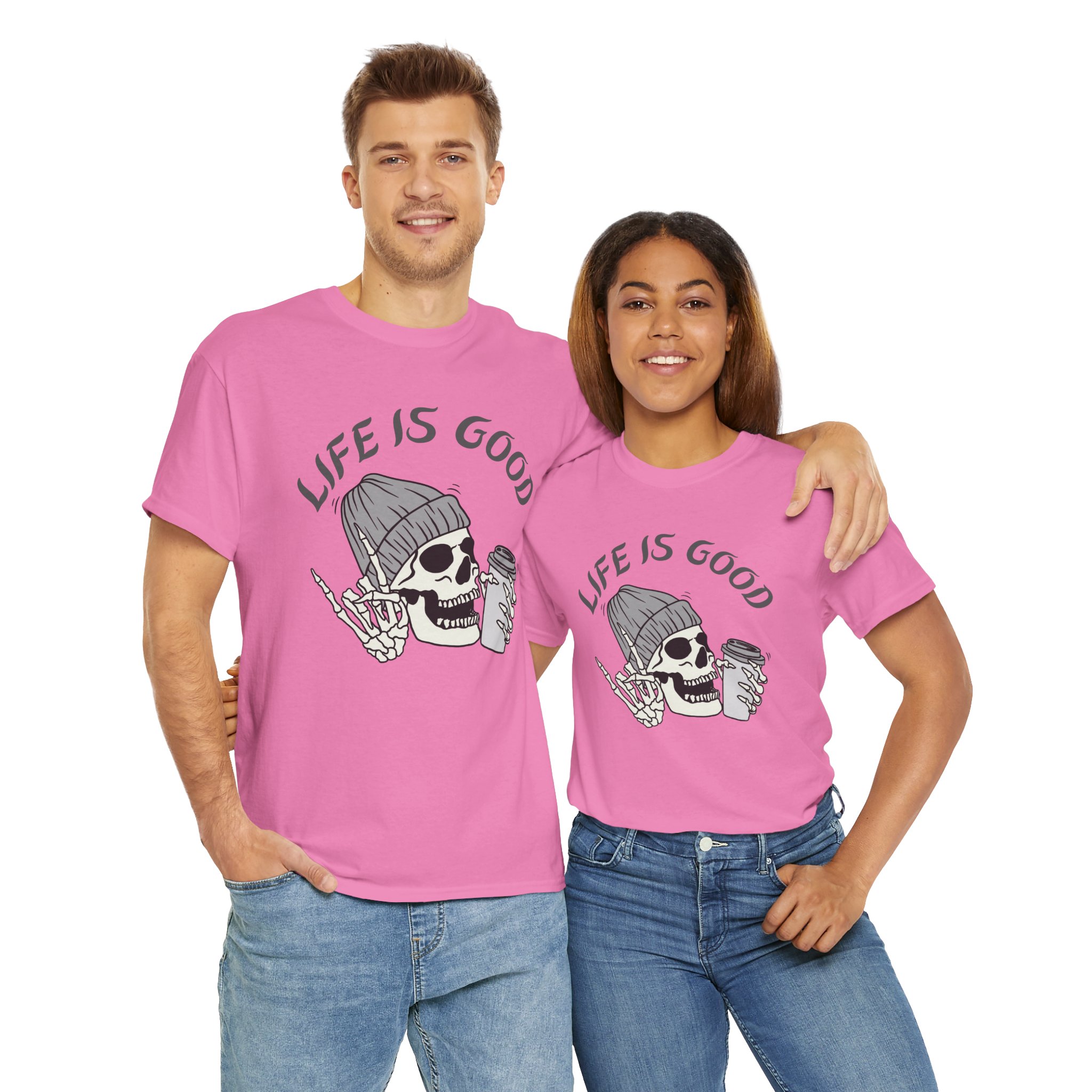 Add a positive twist to your wardrobe with the Skull Life is Good Unisex Heavy Cotton Tee, a perfect blend of bold design and everyday comfort. Featuring a striking skull paired with the uplifting “Life is Good” text on the front, this tee turns a classic staple into a feel-good statement. Whether you’re keeping it casual or dressing it up for a semi-formal vibe, it’s designed to stand out while keeping you cozy. Made with premium, sustainable cotton, this shirt offers durability and optimism in every wear.